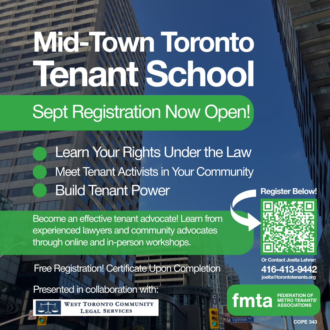Tenants and Tenant Association leaders in the Toronto- St. Paul’s ward are welcome to apply to the Tenant School program.